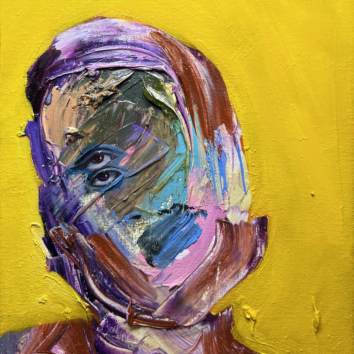 The ‘flag’ image is a disintegrated Palestinian flag made by Belgian artist Youniss Ahamad.