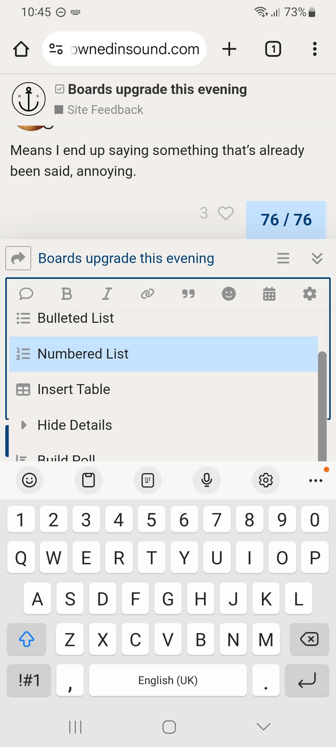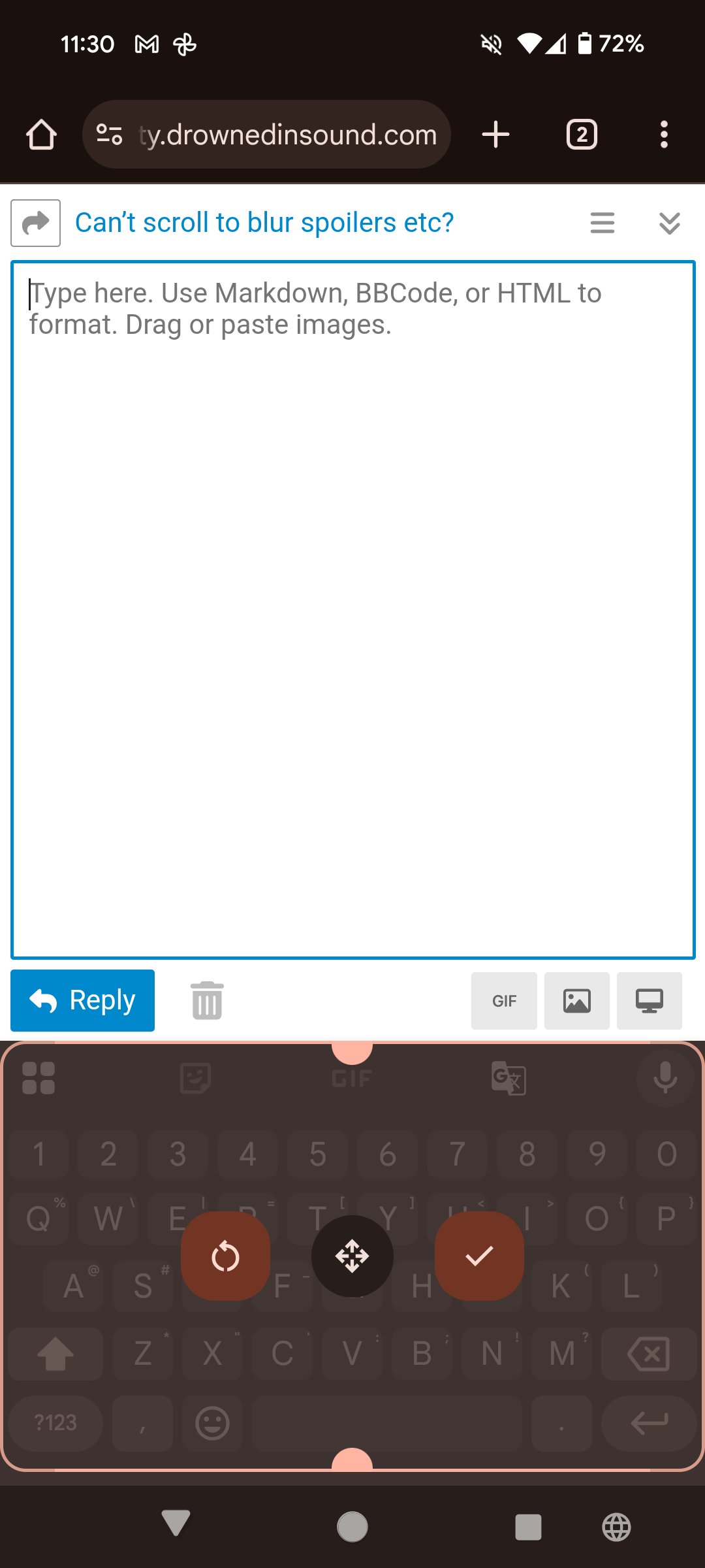 I thought the smaller keyboard had sorted it, but no. It only does it on certain threads; I wonder if has to do with images on the threads or something.