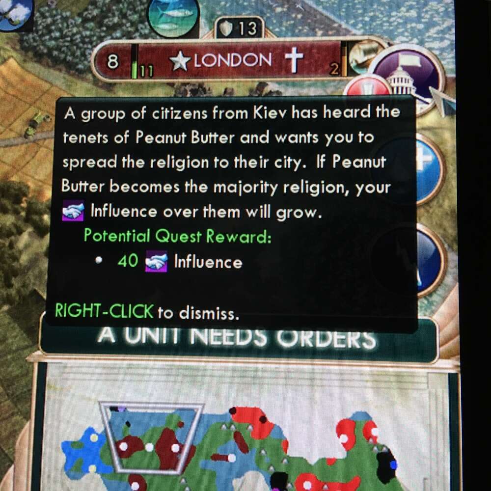 I posted this in the gaming thread a while back but my latest stupid civ thing is naming a religion after domestic products
