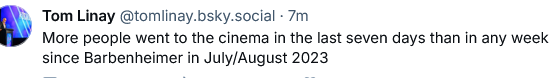 Trailer for Flight Risk before Gladiator 2 tonight. Very much enjoyed how it has a big onscreen âfrom the director of BRAVEHEART, APOCALYPTO and HACKSAW RIDGEâ graphic, without actually saying who that individual isâŠ