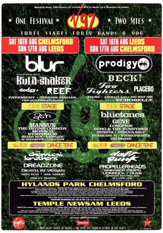 First festival was the free anti-racism festival that Ken Livingstone used to put on before he was mayor / went a bit sideways. I was 11 and can’t find a poster. I remember it being insanely hot and was my first time seeing people on a lot of drugs. Dreadzone and Credit to the Nation were both great.