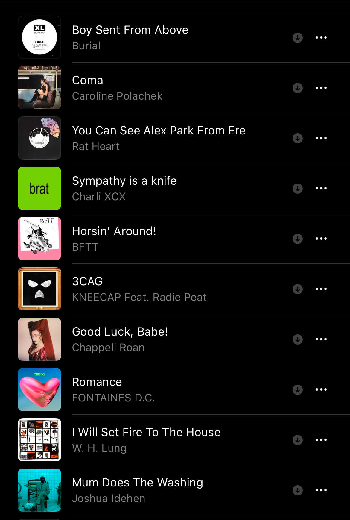 Long Island Sound, Lakker, From Indian Lakes, Bored at my Grandmas House, Still Corners, Night Tapes and Chapell Roan (I do know this one obviously, just isn’t on any of my playlists yet as I only tend to add albums or EPs). Will be listening to these tonight and probably retrospectively filling the gaps in my playlists!
