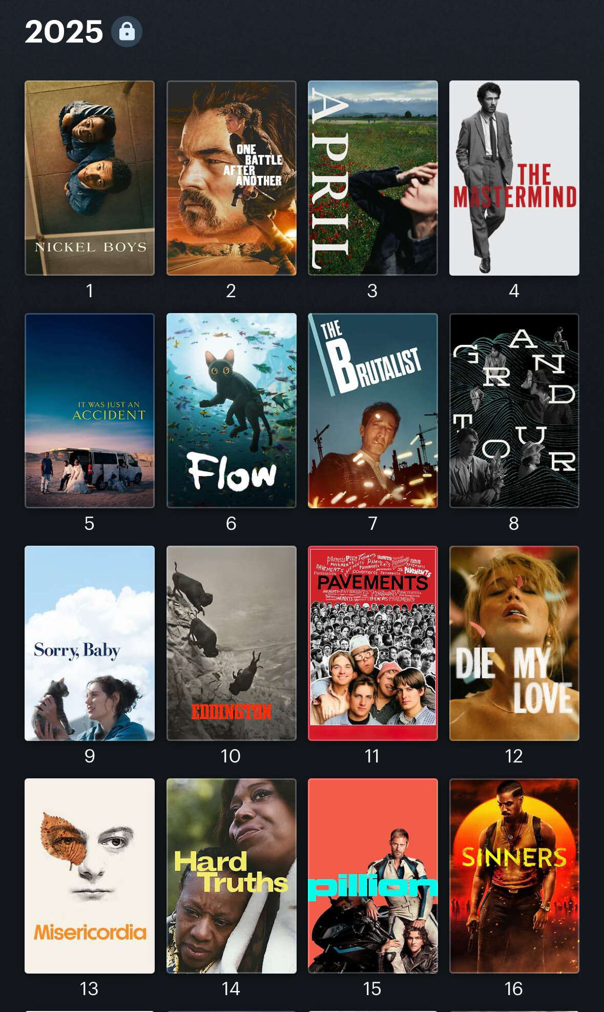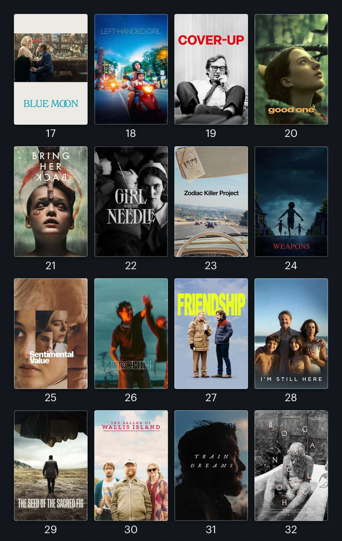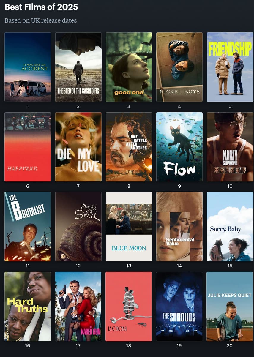 Can’t remember all of them but I loved the Nickel Boys, Flow, Friendship, Hamnet, I’m Still Here, Bugonia