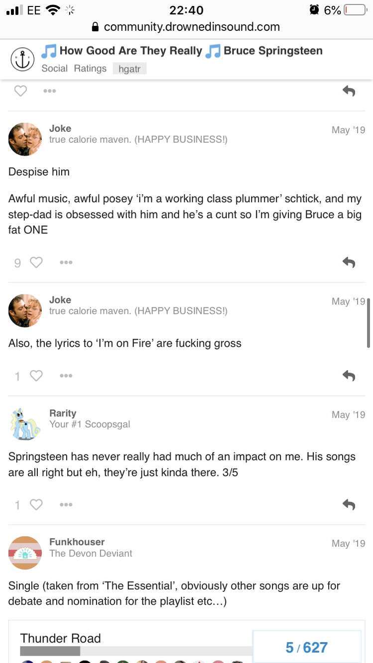 Not really? Iād say itās much milder than a lot of the threads. Is there anything anywhere near as dismissive as the first few posts about Springsteen?