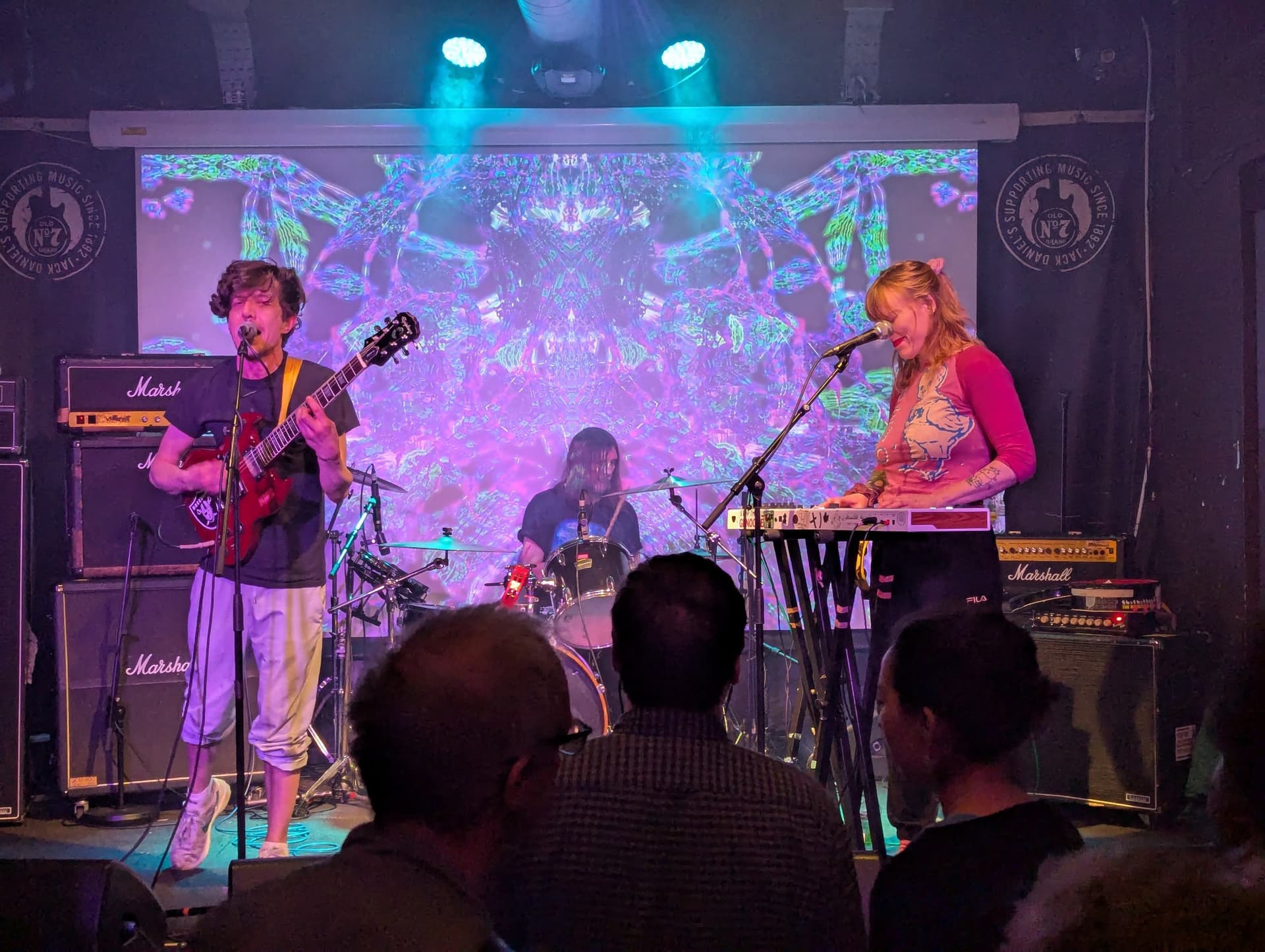 Pink Opaqueâs second ever gig. Pete Green you might know from literal decades of jangle/tweepop service. Danielle Cope you might know from the Al Frescans team in the current series of Only Connect. They play scrappy but enthusiastic and fun electropop including a semi-chiptune cover of Overload.