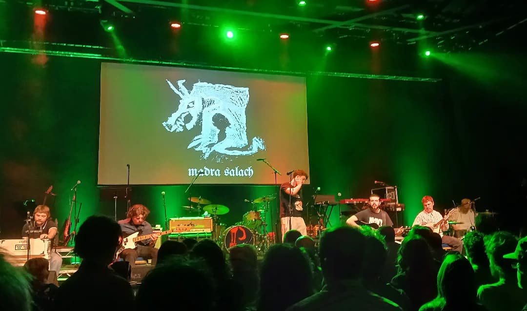 Support was a local band Madra Salach who I hadnât heard of and donât seem to have released anything yet. Theyâre a bunch of young lads who look like they should be in yet another Fontaines-alike post punk band, and the guitarist was wearing a t-shirt saying âHeavy Fucking Metalâ but they were playing trad. Six of them including bass and drums. Actually pretty good - they did a good version of Spancil Hill and a darker arrangement of The Poguesâ The Old Main Drag, plus a couple of their own songs that slotted in quite well. One of the membersâ parents must have been in front of me as the mum was waving as they came on which was quite sweet. Slightly odd choice of support but I enjoyed them.
