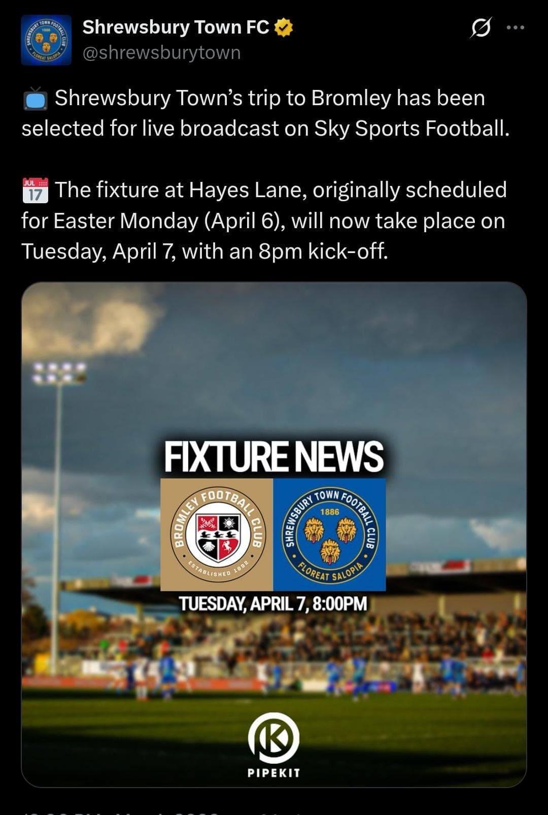 Whereas one of the good things about being a lower league fan used to be 99% of games were either 3 on Saturday or 19:45 midweek and now we’re doing daft things like moving a game from a bank holiday Monday to a Tuesday which clashes with the CL semis so will probably play out to an audience of about 100, in exchange for a few hundred quid.