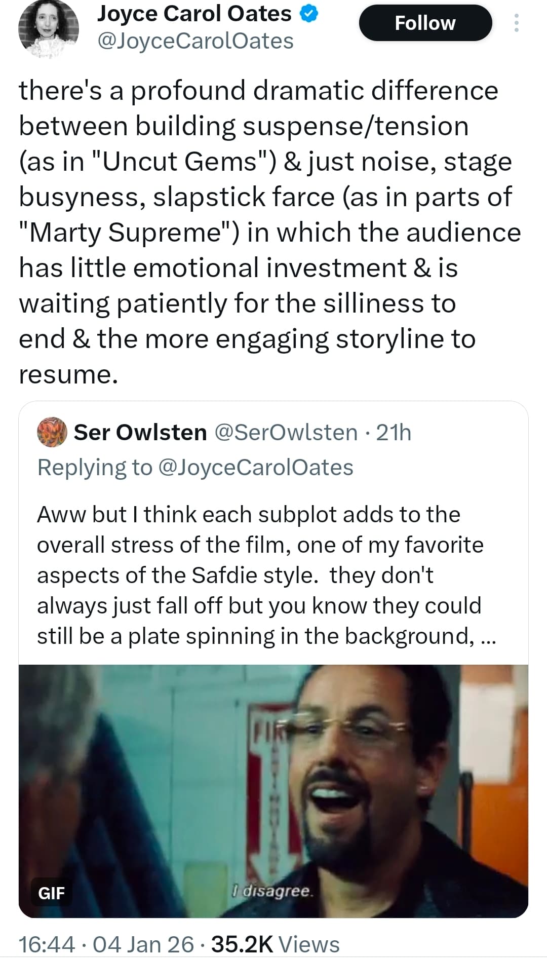 I do feel Marty Supreme is more an out and out comedy than Uncut Gems though so I think you have to balance that tonal difference