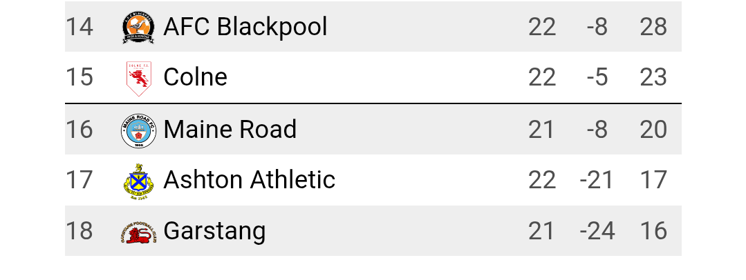 Long shot, but on the off chance that anyone’s around Manchester and looking for a game on Saturday, my local side Maine Road FC could do with your support. Things aren’t looking good. Attendances averaging under a hundred and relegation from the North-West Counties leagues looking quite possible. They’ve got a big game against relegation rivals Colne this weekend.