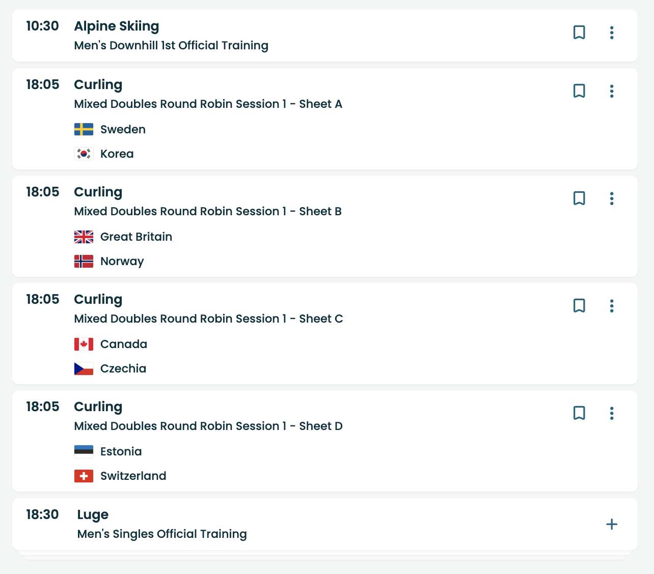 Anyway, starts tomorrow. Opening ceremony on Friday but there’s Alpine Skiing, Curling and Luge tomorrow: