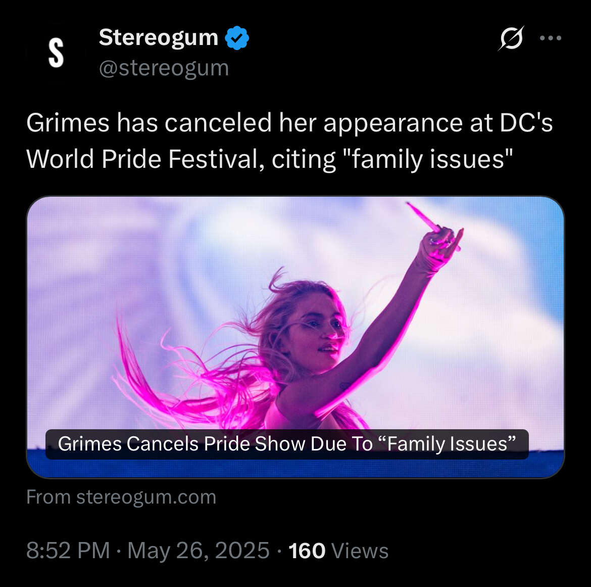 Art Angels was fucking brilliant, but I sold my vinyl copy because every time I saw it, I just thought of Elon Musk.