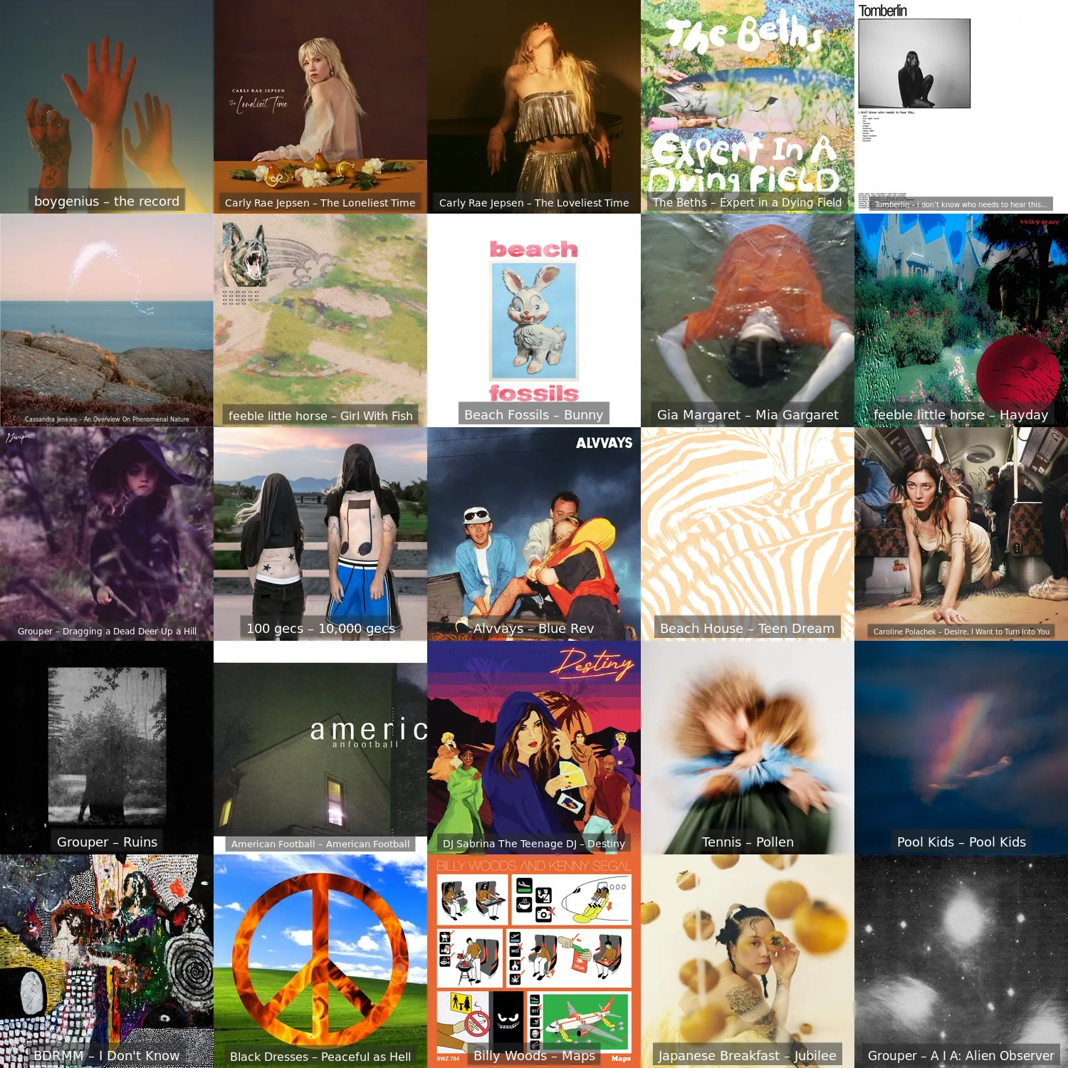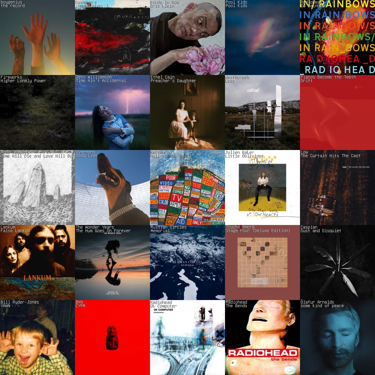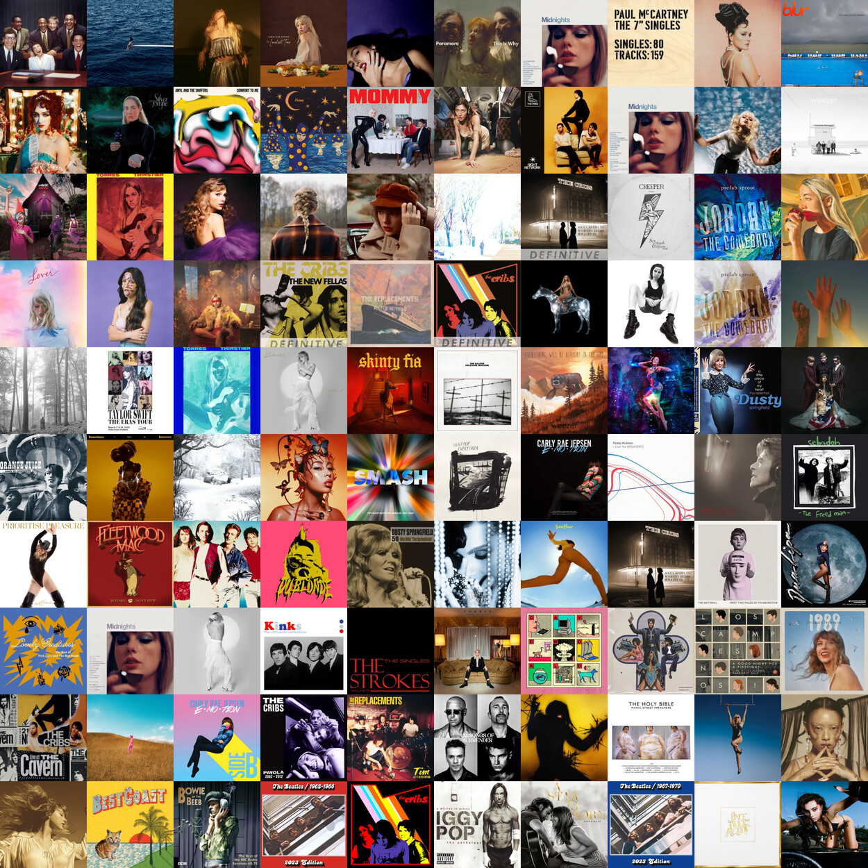 Put your lastfm username into this site https://lastcollage.io/ to generate your most listened to albums of 2023.