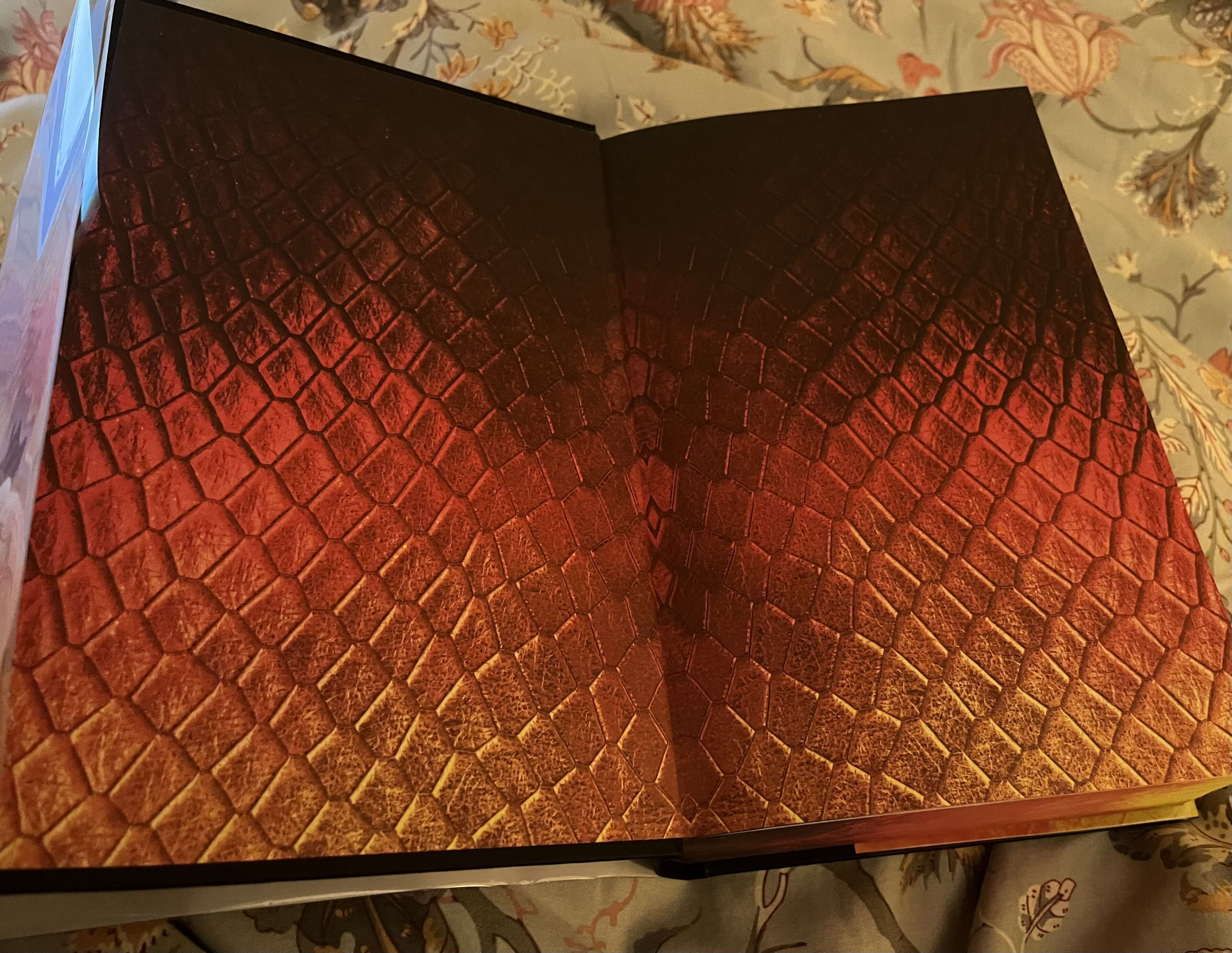 Also while I was in Goldsboro the other day, I nabbed a special edition copy of King Sorrow signed and numbered etc, but also with these great dragon scale end pages: