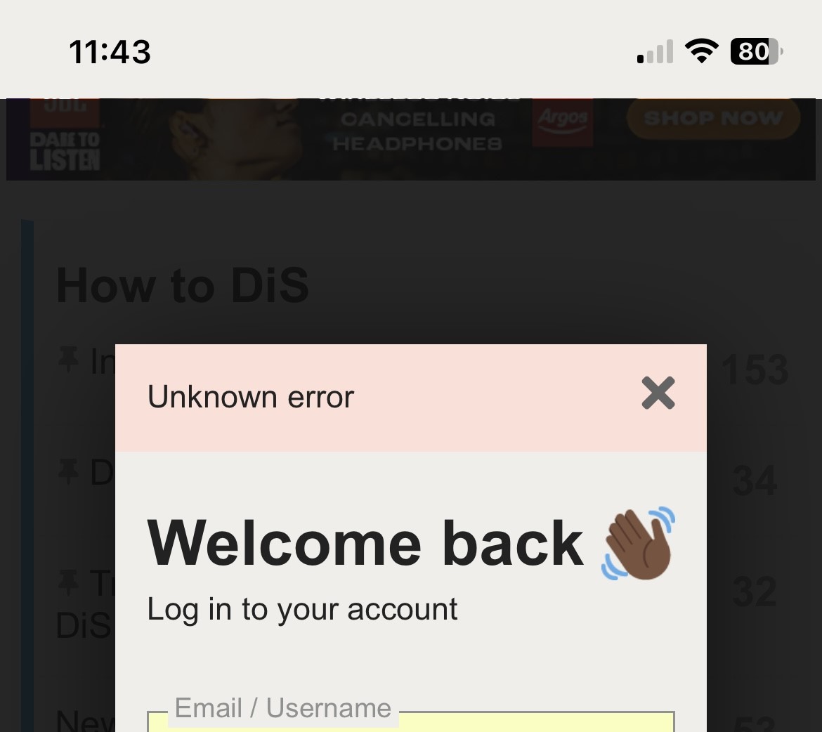 I can’t log into DiS on my laptop at home, also can’t get in on my phone. I just get the note “unknown error”.