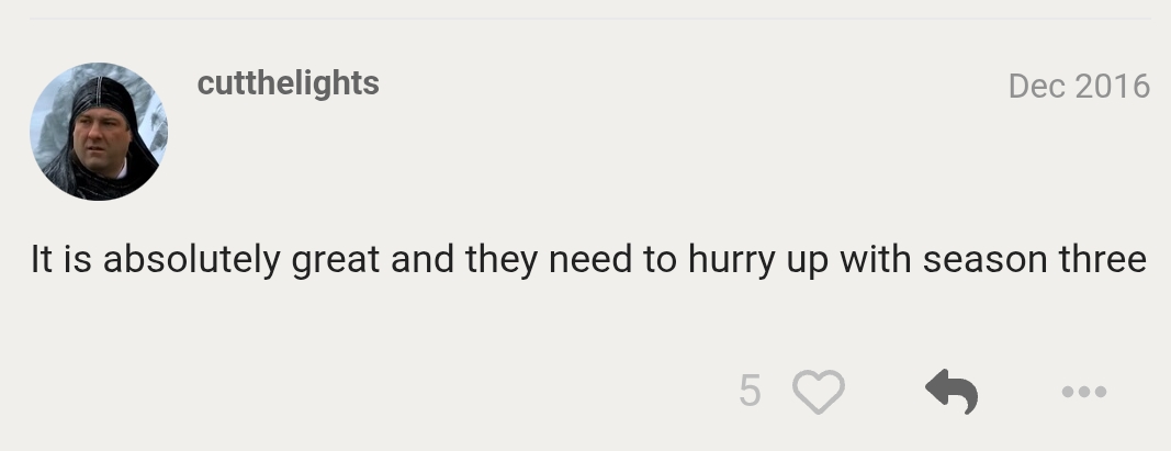 Feels like yesterday that the most obnoxious people in the world were moaning about season 3 taking too long