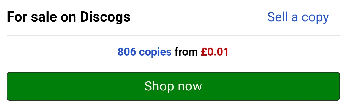 âŚor 0.000257% of its lowest Discogs purchase price.