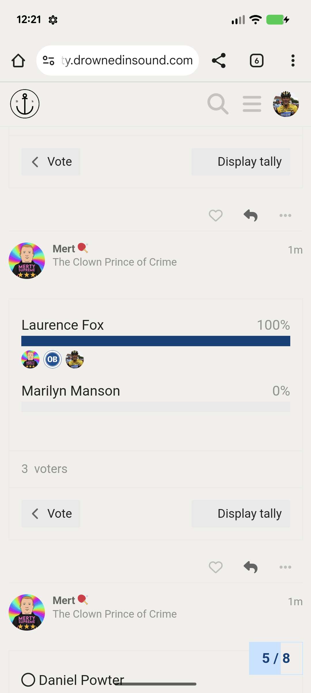 Struggling a bit with deciding whether I’m voting on Bad Music or Bad Person. Happily often it’s both!