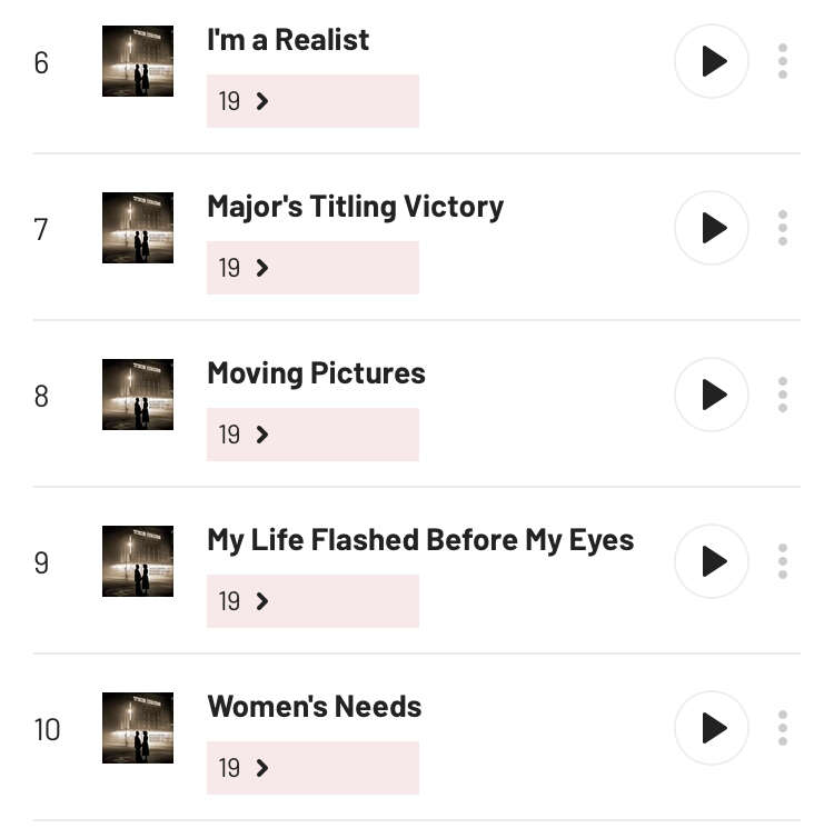 To be honest both entities top 10s are tracks from one album (1999 and Purple Rain, respectively) so I’ve bumped up some other tracks just for the sake of being less boring. Tribulations of mostly being an album listener.