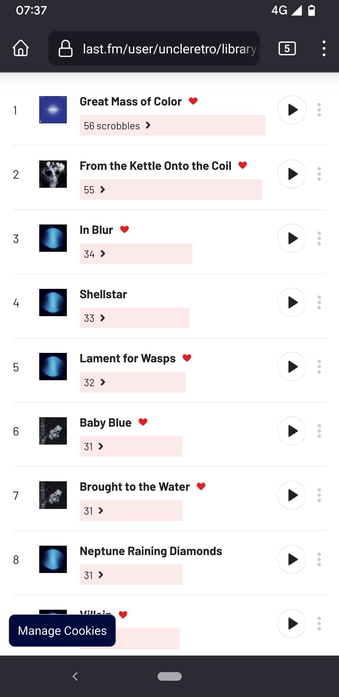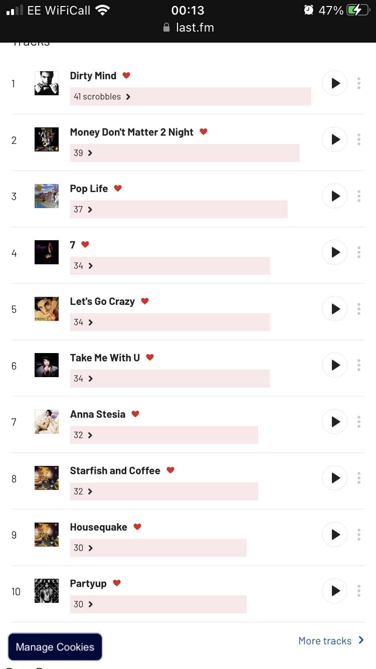 More than me. I have scrobbled 0 tracks by Prince so can’t join in here.