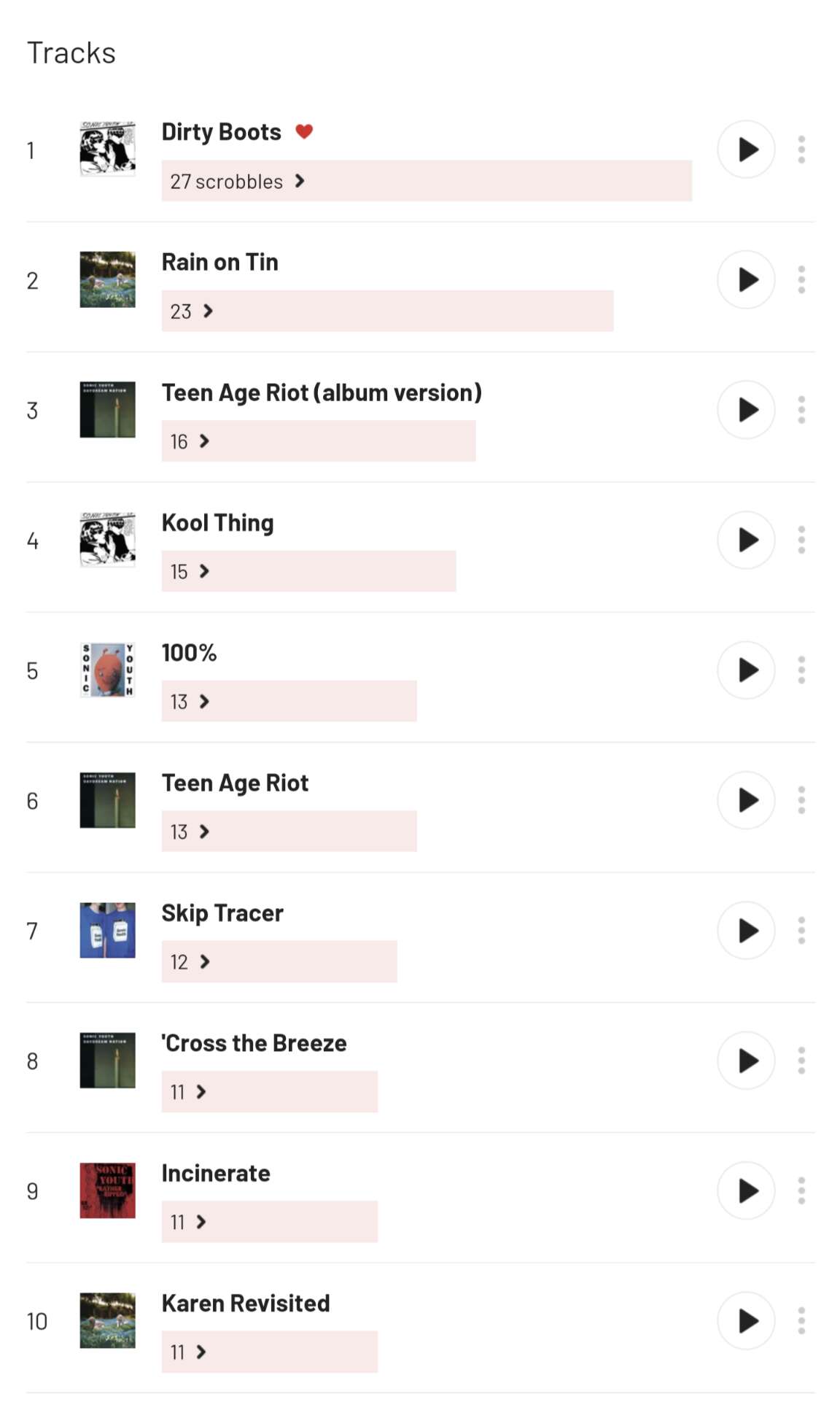 *Just noticed that two versions of Teenage Riot are in there because of stupid Spotify tagging. Number 11 is Hoarfrost