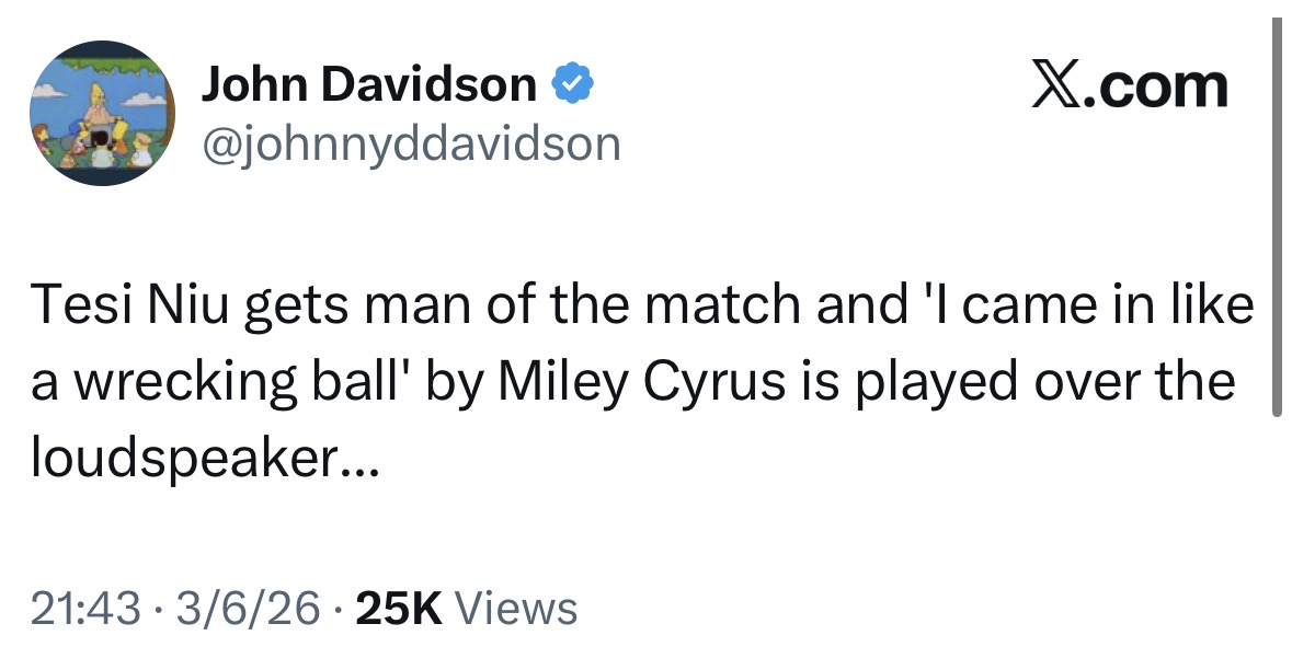 Just heard what the Leigh fans were singing last night about Tesi Niu. Vile stuff.