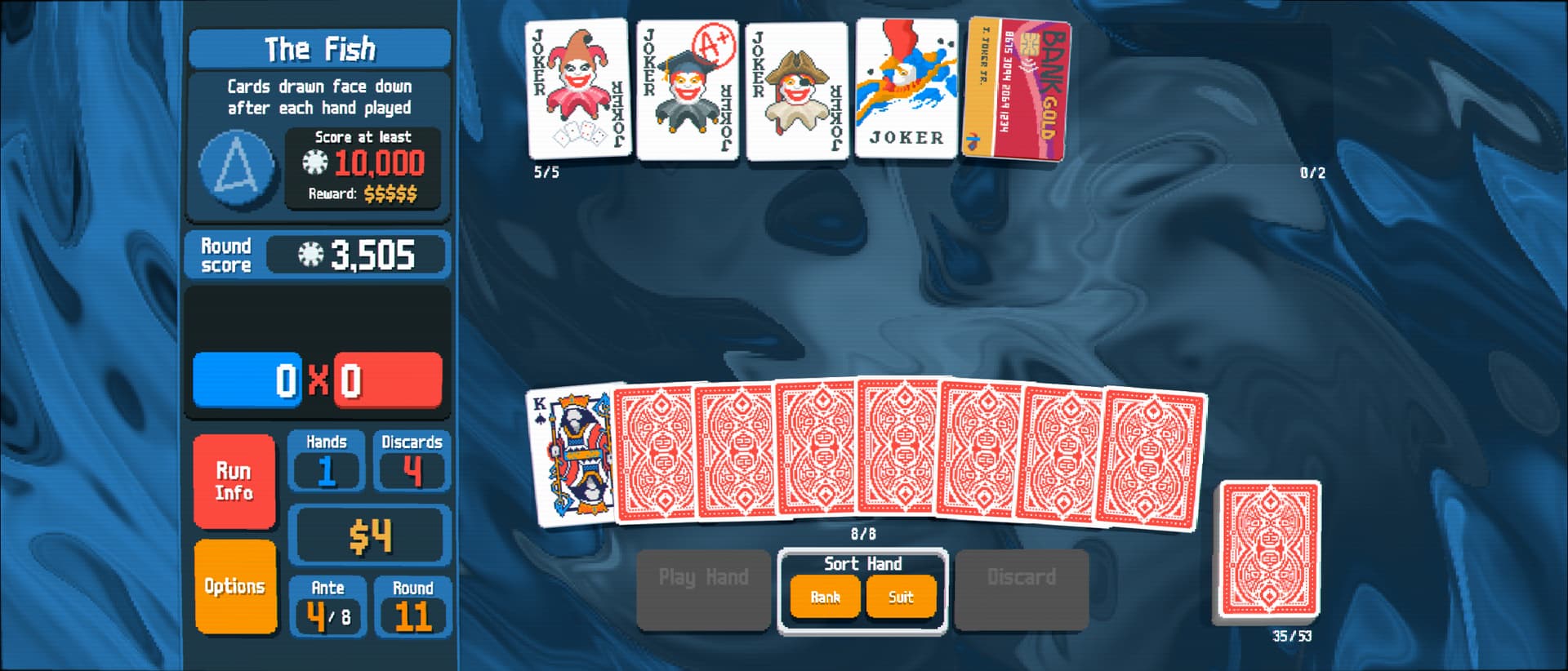 Had a great two pair run going, then on level 6 boss I accidentally pressed play rather than discard on four random cards and fucked it all up.