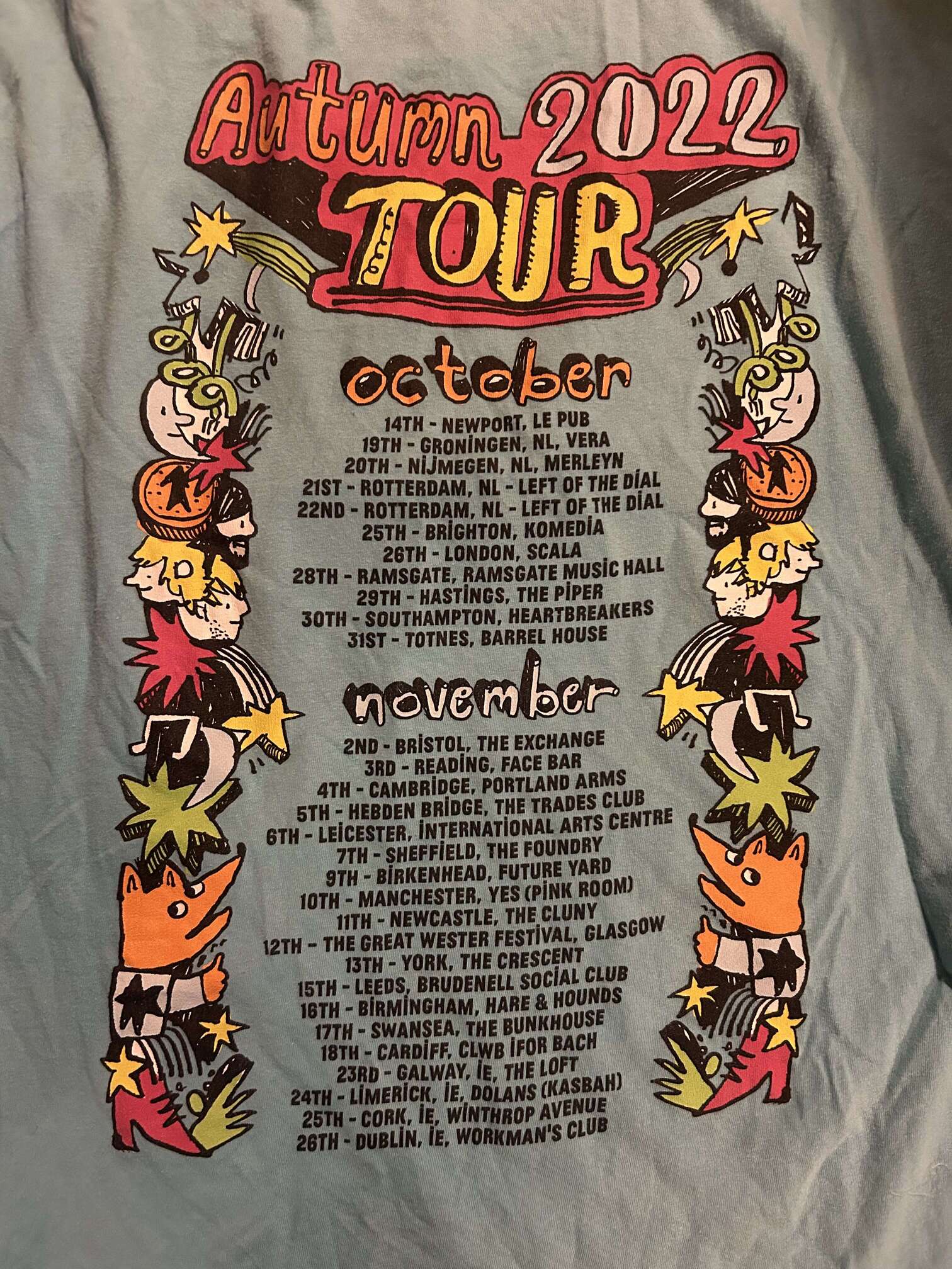 This is the back of my The Bug Club tee shirt from a couple of years ago, they played 22 UK dates. Why aren’t more bands playing such a wide range of venues? Lack of willing promoters? Lack of audiences in the ‘sticks’? Unwillingness of bands to try new ‘markets’? Economics when the band is more than a 3 piece? (Another of my favourite live bands, The Wave Pictures are also very good at playing new and different venues across tours. They are also a 3 piece). All of the above? I’ve never promoted nor played in a band so I’m genuinely interested in why the range of towns/cities played has collapsed so much in the last 20 years.