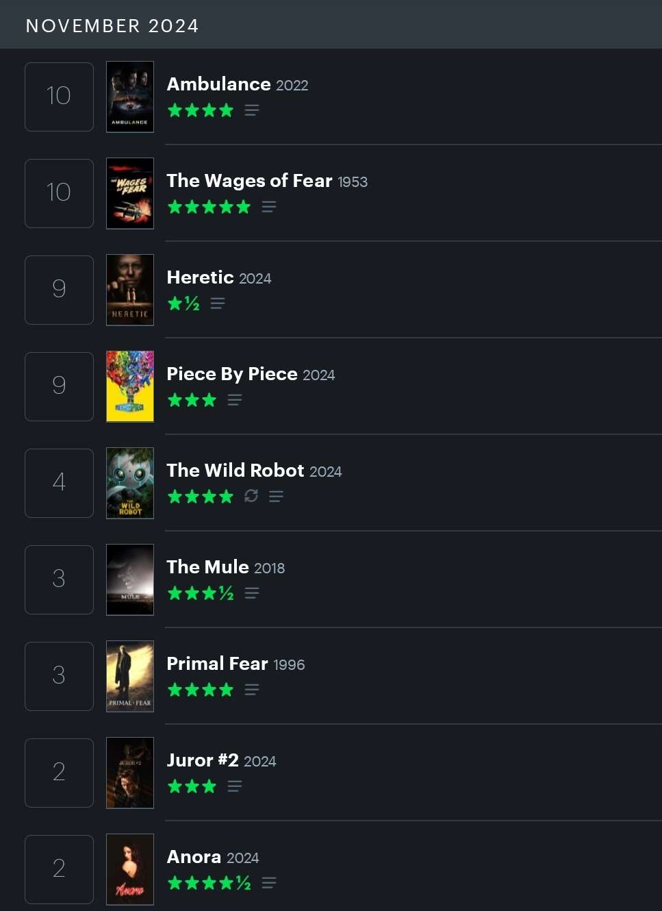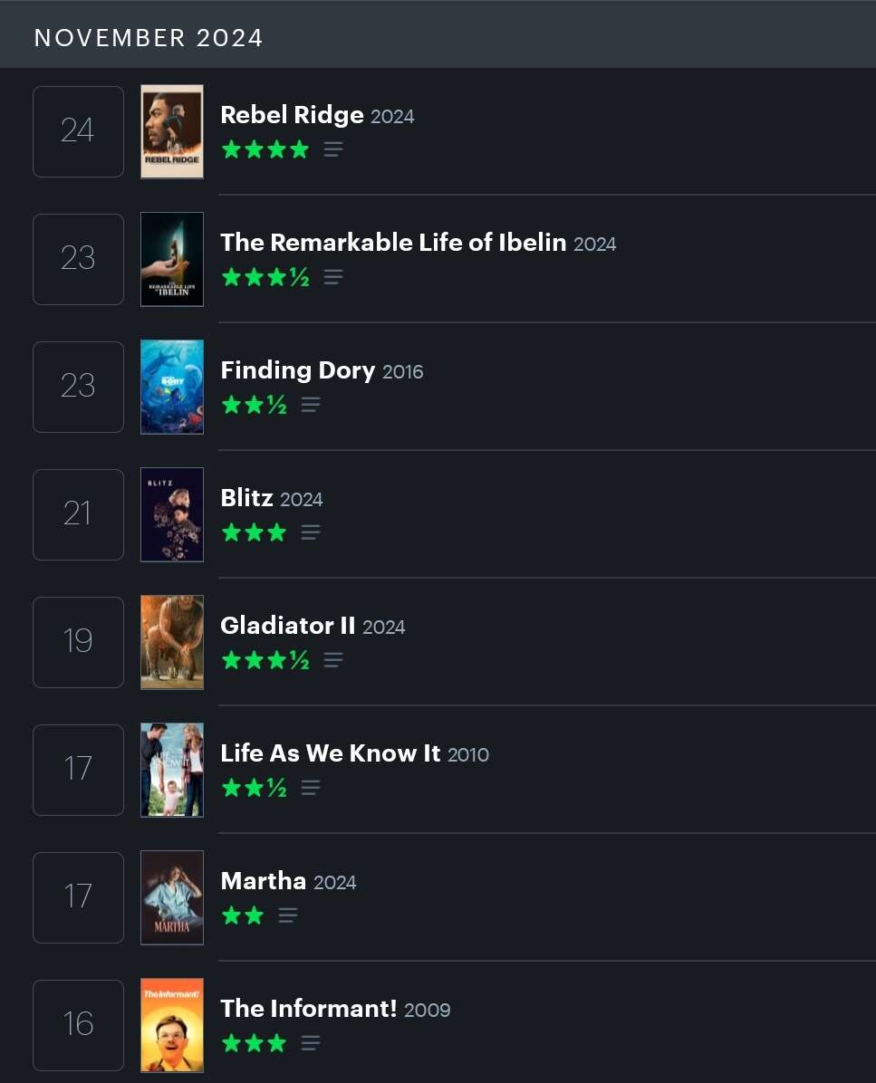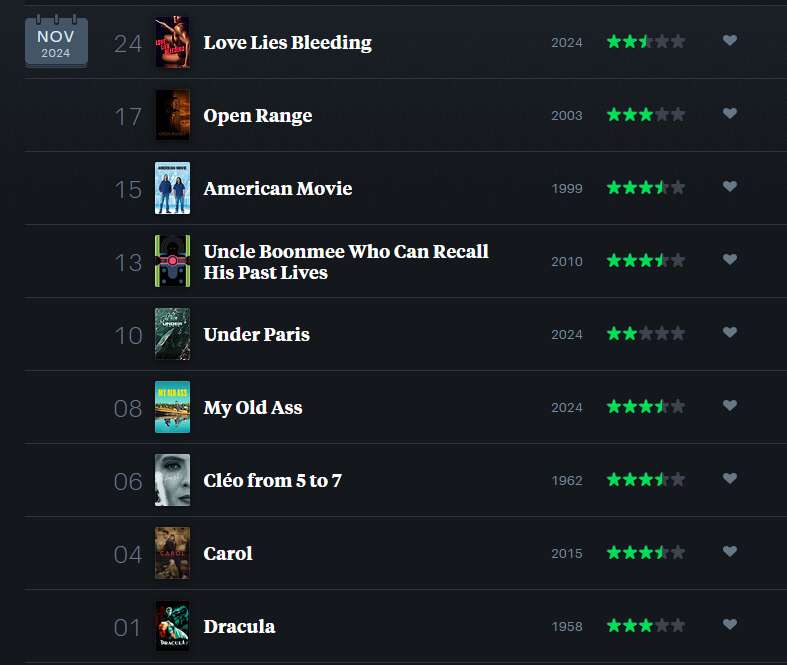Ok I’m looking at my notes from Nov 2024 and these were the favourites of the many films I watched: