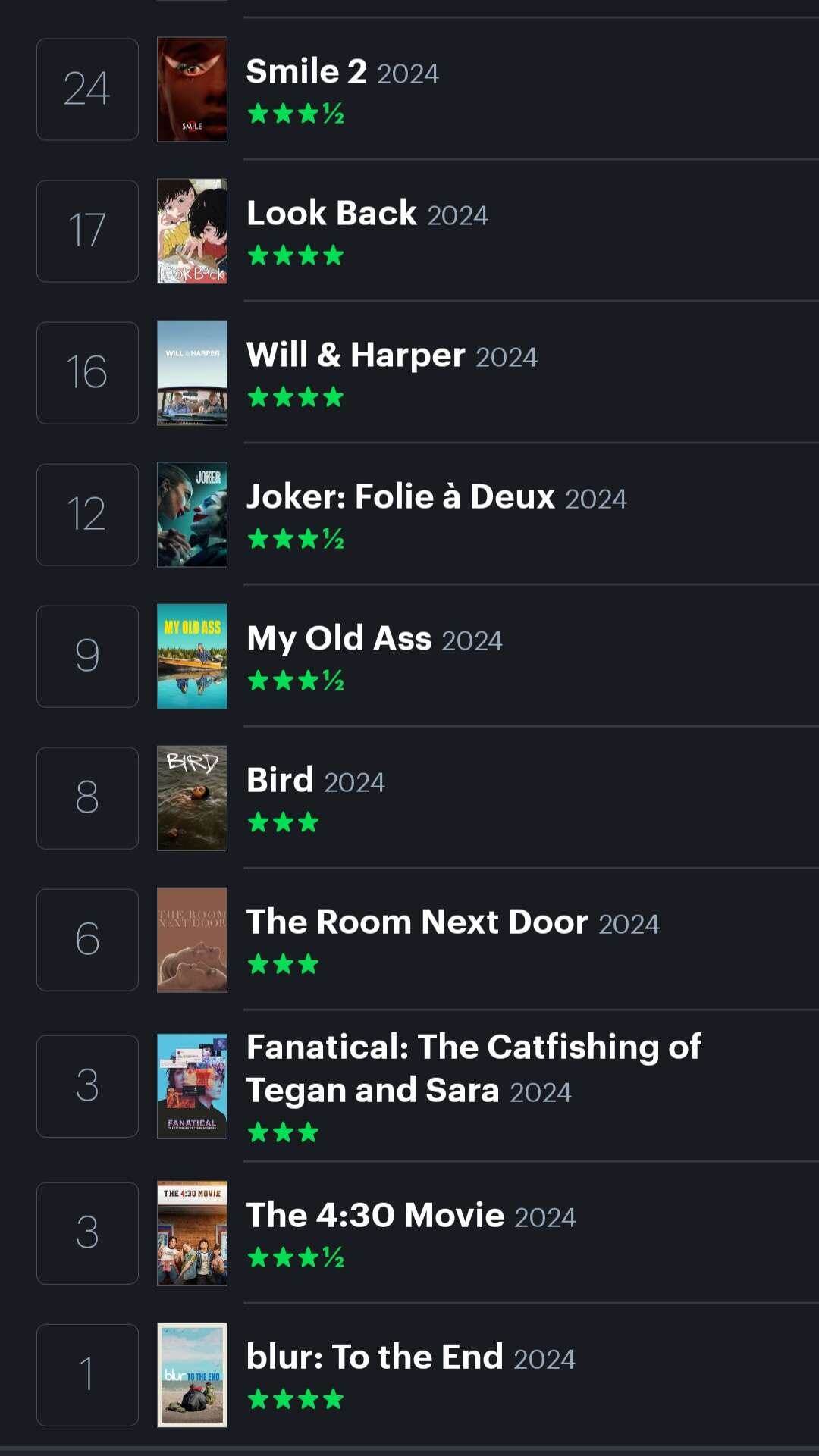 Best: Conclave, Anora, Look Back, Fargo (rewatch), Starlet, Knockin’ on Heaven’s Door, I’m A Cyborg But That’s OK (rewatch), Wildlife
