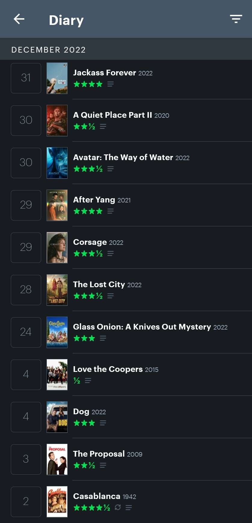 Movies can also be marked as watched, liked or given a rating and they do not feature in your diary. You would do either of these for movies you’ve watched in the past.