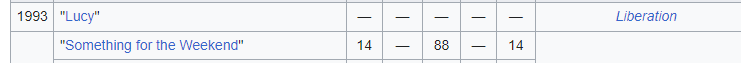 If weāre going to get technical about it, both Europop and Timewatch were released two years before that. And on the bandās website Something For The Weekend is listed as being the first single.