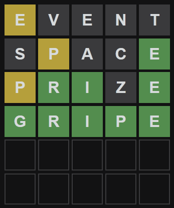 Really annoyed I actually got the word but then decided to enter a different word to the one I thought it might be on my 6th guess